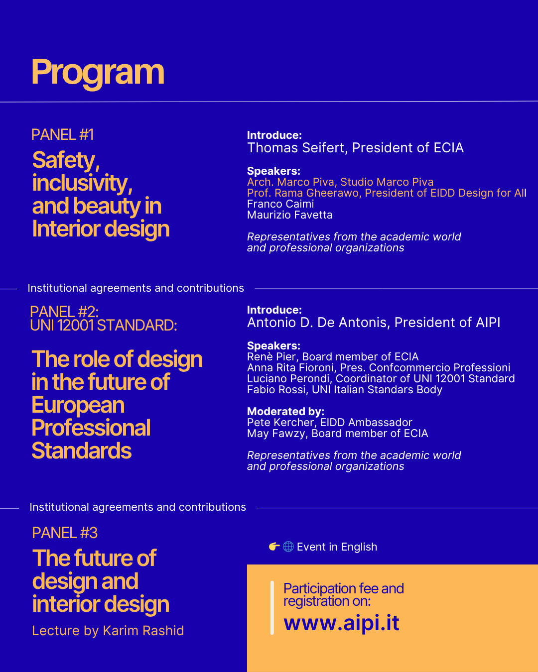 It is an honor to announce the participation in the event of our special guests: international designer Karim Rashid, architect Marco Piva, and Professor Rama Gheerawo.